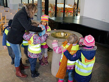 | | Einen Taufstein kann man nicht nur sehen, sondern auch fühlen! |