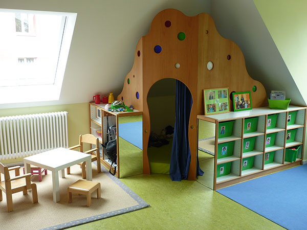Eine Spielecke in der Marienkäfergruppe.Verschiedene Ecken und Ebenen laden in der Marienkäfergruppe zum Spielen ein.Sofa- und Lese-Ecke in der Kasimirgruppe.Platz zum Bauen und Stapeln in der Kasimirgruppe.Willkommen in der Drachengruppe!Wandgestaltung in der Drachengruppe.Ein Rückzugsort in der Pinguingruppe.Helle Räume für die kleinen Pinguine.Jedes Kind der Pinguingruppe hat ein eigenes Plätzchen für seine sieben Sachen.Der Bauteppich in der Delfingruppe.Viele Utensilien laden in der Delfingruppe zum Basteln und Malen ein.Die Turnhalle bietet Raum zum Tollen und Toben.Der Waschraum im Obergeschoss bietet für kleine und große Kinder die richtige Höhe.Im Wickelraum werden die Windelkinder versorgt.